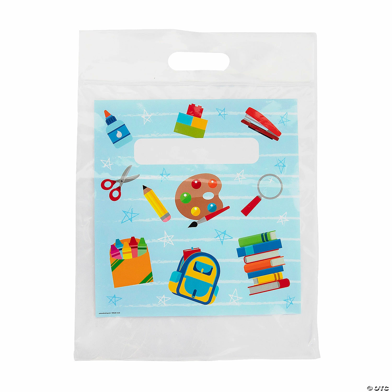 β’ All Occasion Use: These versatile bags are perfect for year-round and are ready for any occasion!β’ Reusable: Go green with this eco-friendly bag! They could even be reused for future events and outings.β’ Easy Gift Wrapping: These sturdy bags are suitable for holding a variety of handouts and come with easy-to-carry handles. They make holding any item easy breezy!This storage bag is pretty cool and very handy to use in school! Featuring a fun design of classic school icons, these bags are a must-have addition to everyday classroom supplies. Hand them out to students at the beginning of the year to hold basic supplies like erasers, writing utensils and stickers. They can also be used for outings to the library, field trips and so much more. Personalize by writing the childβs name in the provided space on the bag. Size: 10 1/2″ x 14 1/4″ Quantity: 12 Material: Plastic