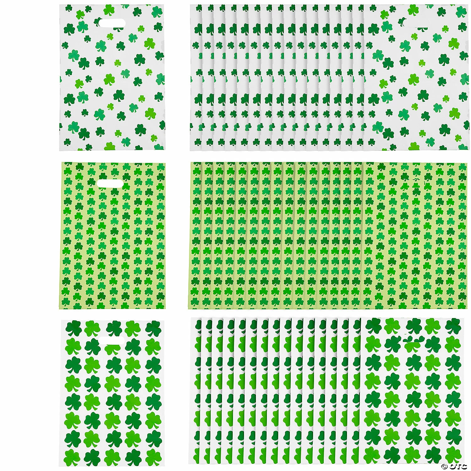 β’ Perfect Size for Parties: These treat bags are just the right size for candies. Fill them up with tasty treats and hand them out as party favors at your next St. Pat’s party!! β’ Sweet Style: Display your delicious delights or party favors in style with lovely organza bags! You can make a decorative statement at any event with these bags and a few treats.β’ Say Thanks with Sweets: Are you looking for an easy way to thank the people in your life? These multipurpose bags filled with dainty bonbons, truffles, and mints are sure to delight the eyes as well as the palate.Product Description:Get your St. Patrick’s Day party supplies all wrapped up when you add these treat bags to your shamrock selection! Colorful and printed with eye-catching print, this huge supply means you’ll have enough to send an entire party home with seasonal goodies. Keychains, party favors, fun accessories, notepadsβthese bags are up to the job of holding it all! © OTCSize: 12 1/2″ x 17″Quantity: 50Material: Plastic.