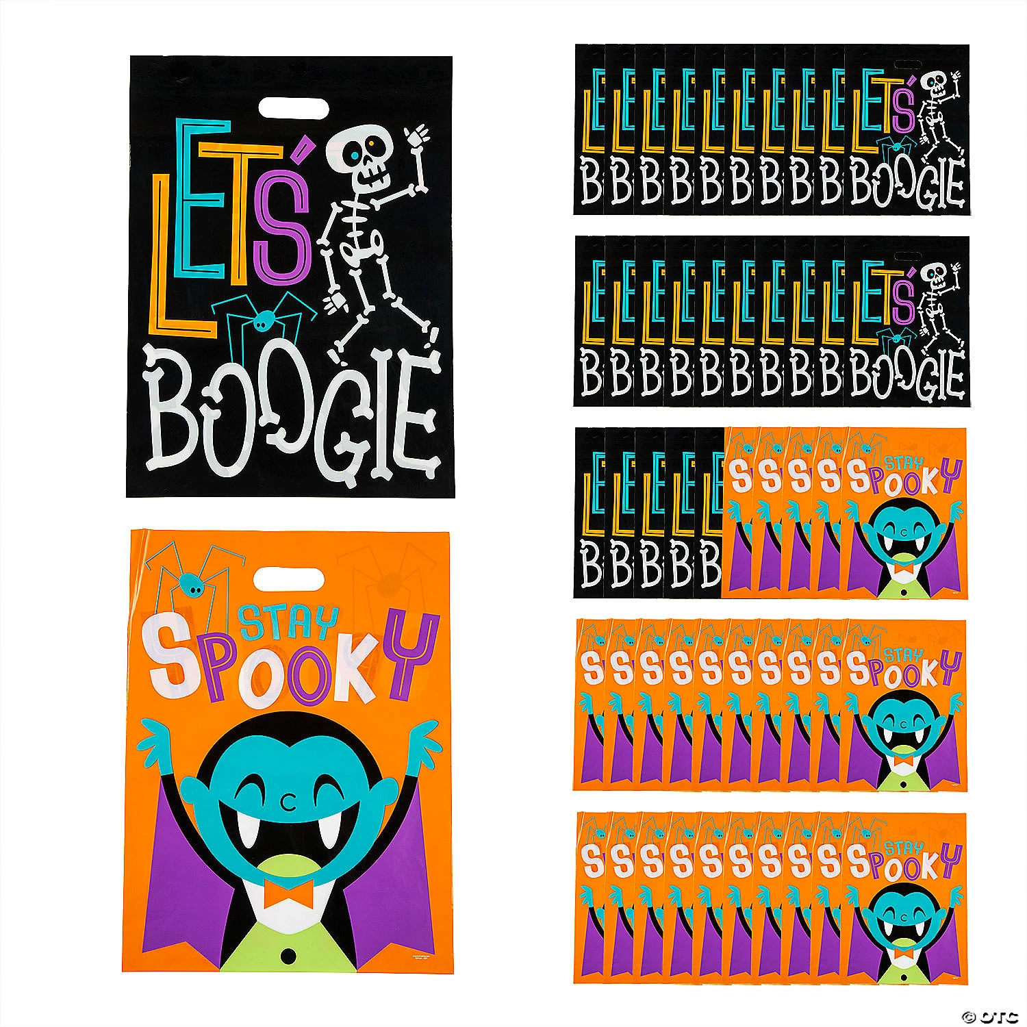 โข Perfect Size for Parties: These treat bags are just the right size for candies. Fill them up with tasty treats and hand them out as party favors at your next birthday party or holiday gathering!โข Travel-Friendly: Once the party is over, your guests will be happy to take home your favorite cookies, cake pops, cupcakes or other baked goods in these easy-to-carry bags. โข Says Thanks with Sweets: Are you looking for an easy way to thank the people in your life? These multipurpose bags filled with great snacks are a sweet way to spread appreciation among party guests, students and teachers, or employees!Product Description:Hand out these Goofy Ghouls Trick-or-Treat Bags on fright night! Fill them with toys, candy and more to give to Halloween party guests or trick-or-treaters. More goofy than creepy, these goody bags are perfect for the spookiest night of the year! ยฉ OTC Size: 12 1/2″ x 17″Quantity: 50Material: Plastic.