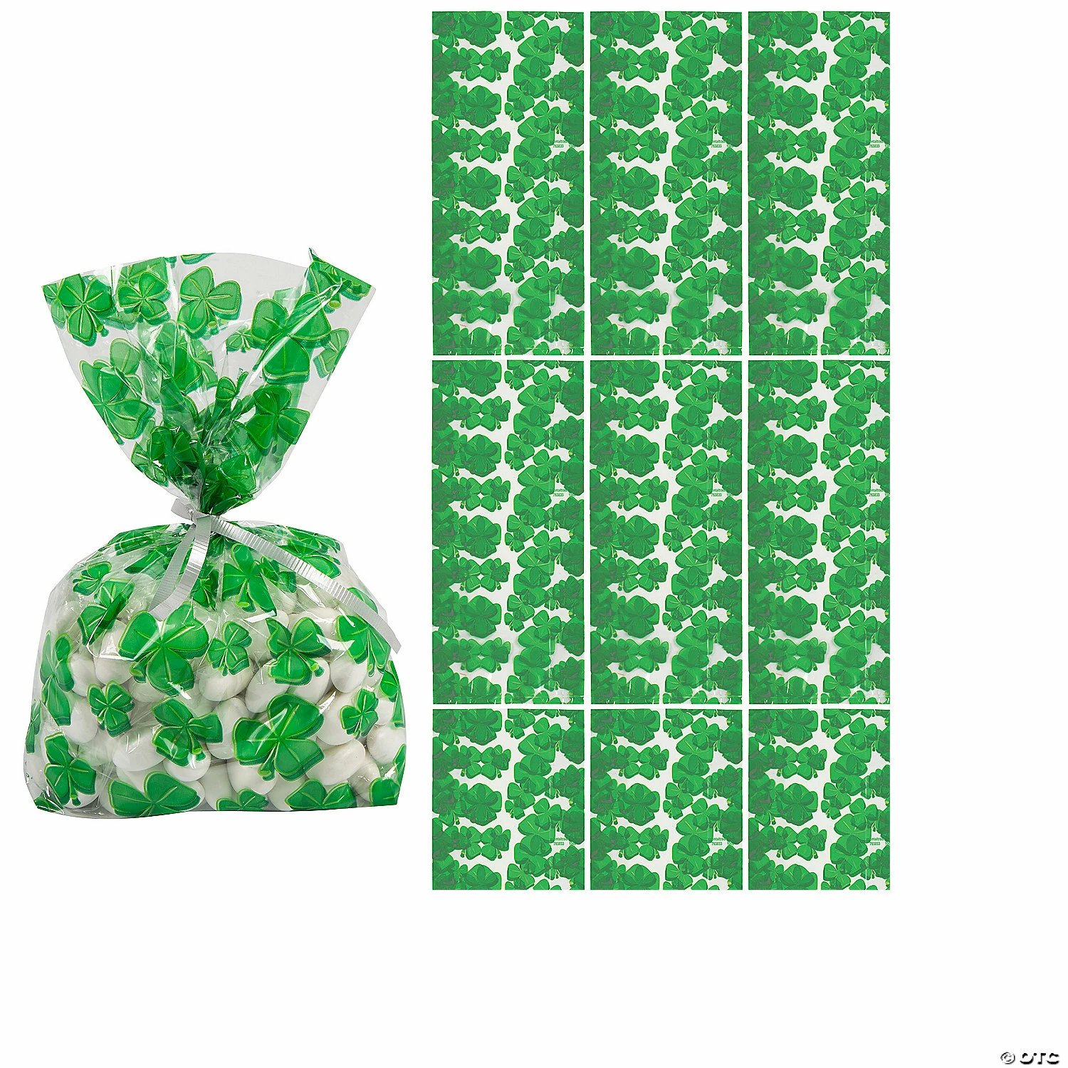 β’ Perfect Size for Parties: These treat bags are just the right size for candies. Fill them up with tasty treats and hand them out as party favors at your next Saint Patrickβs Day party or other Irish-themed event!β’ Travel-Friendly: Once the party is over, your guests will be happy to take home your favorite cookies, cake pops, cupcakes or other baked goods in these easy-to-carry bags. β’ Say Thanks with Sweets: Are you looking for an easy way to thank the people in your life? These multipurpose bags filled with great snacks are a sweet way to spread appreciation among party guests, students and teachers, or employees!Product Description:If you’re throwing a St. Patrick’s Day party or event, then you’ll love these green cellophane bags featuring a shamrock print! Fill these St. Patty’s party favors with treats, chocolate gold coins, small toys and a dash of Irish luck! Your guests will love these shamrock goody and gift bags filled with fun treats! Ties not included. Β© OTCSize: 5 1/2″ x 3 1/4″ x 11″Quantity: 12Material: Cellophane.
