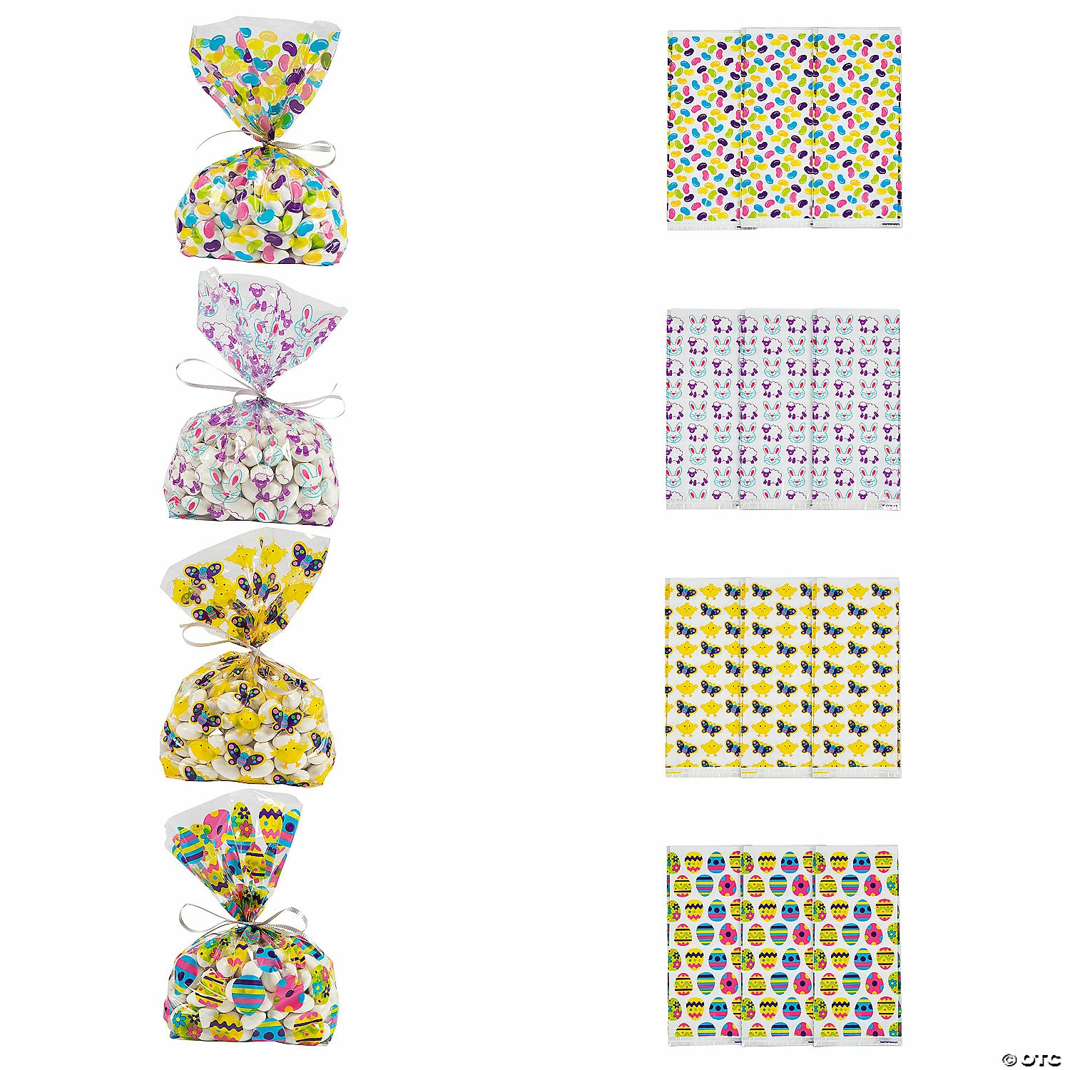 β’ Travel-Friendly: Once the party is over, your guests will be happy to take home your favorite cookies, cake pops, cupcakes or other baked goods in these easy-to-carry bags. β’ Say Thanks with Sweets: Are you looking for an easy way to thank the people in your life? These multipurpose bags filled with great snacks are a sweet way to spread appreciation among party guests, students and teachers, or employees!β’ Perfect Size for Parties: These treat bags are just the right size for candies. Fill them up with tasty treats and hand them out as party favors at your next birthday party, holiday gathering or wedding reception!Product Description:Easter gifts for all! Our printed goodie bags are perfect for your Easter egg hunts and for little holiday presents. This assortment of cellophane bags includes a variety of colorful prints, including rainbow jelly beans and patterned eggs. The decorative designs provide a sneak peek at the treasures inside. Ties not included.Size: 5 1/4″ x 3 1/2″ x 11″ Quantity: 12Material: CellophaneΒ© OTC