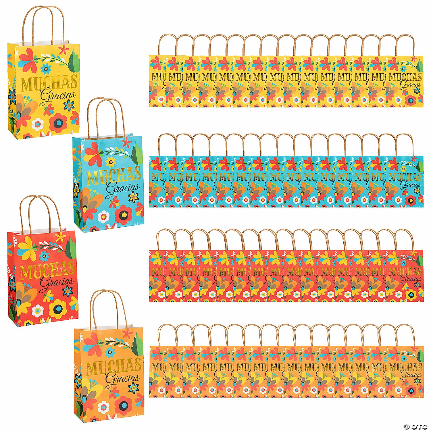 Thank someone in style with these colorful, fiesta-themed gift bags. These paper gift bags feature vibrant colors and gold foil βmuchas graciasβ messaging β the perfect gift bags to thank guests for attending any fiesta! Stock up on these fun gift bags so youβre always ready to say βmuchas graciasβ in style.