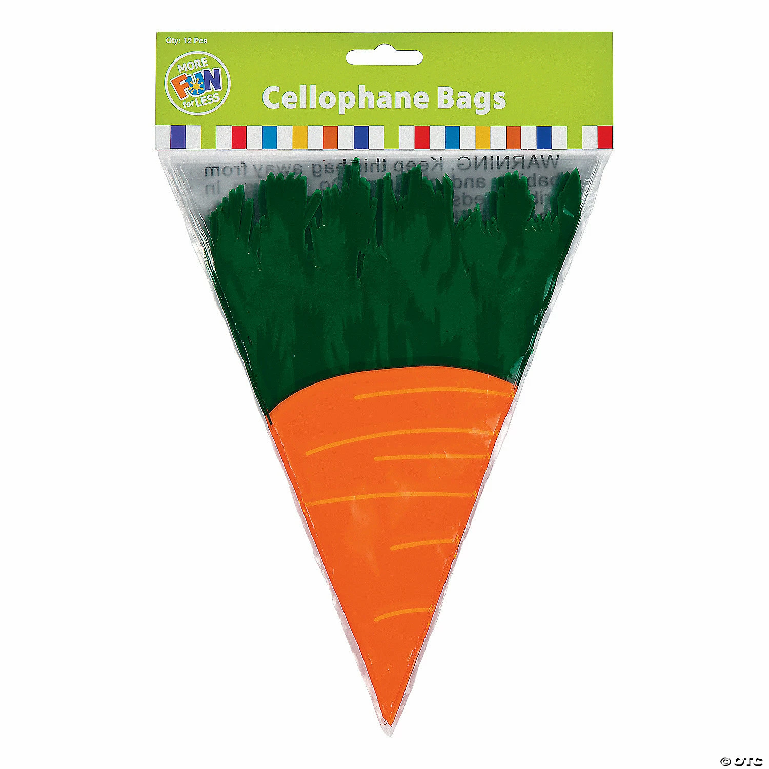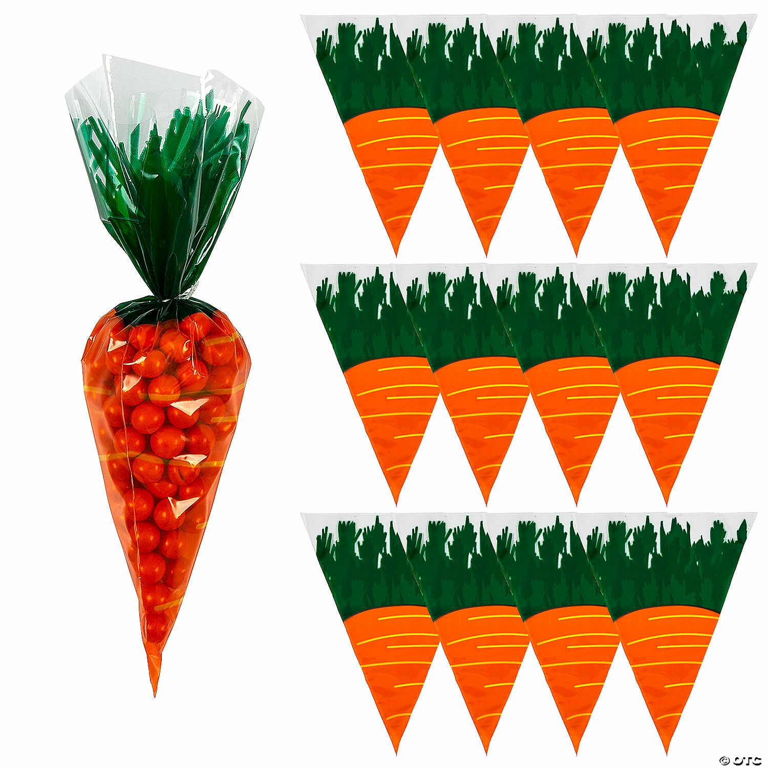 β’ Sweet Style: Display your delicious delights or party favors in style with these fun bags! You can make a decorative statement at any event with these bags, a few treats and some stylish twist ties.β’ Perfect for Easter Parties: These treat bags are just the right size for candies. Fill them up with tasty treats and hand them out as party favors at your next Easter egg hunt, Easter gathering or spring event!β’ Travel-Friendly: Once the party is over, your guests will be happy to take home your favorite cookies, cake pops, cupcakes or other baked goods in these cute bags bags. Product Description:Create memorable party favors with these goody bags! Perfect for filling with jelly beans and other springtime goodies, these treat bags look like a bunny rabbitβs favorite veggie! Ties not included. Β© OTCSize: 7 1/4″ x 9 1/4″ Quantity: 12Material: Cellophane.