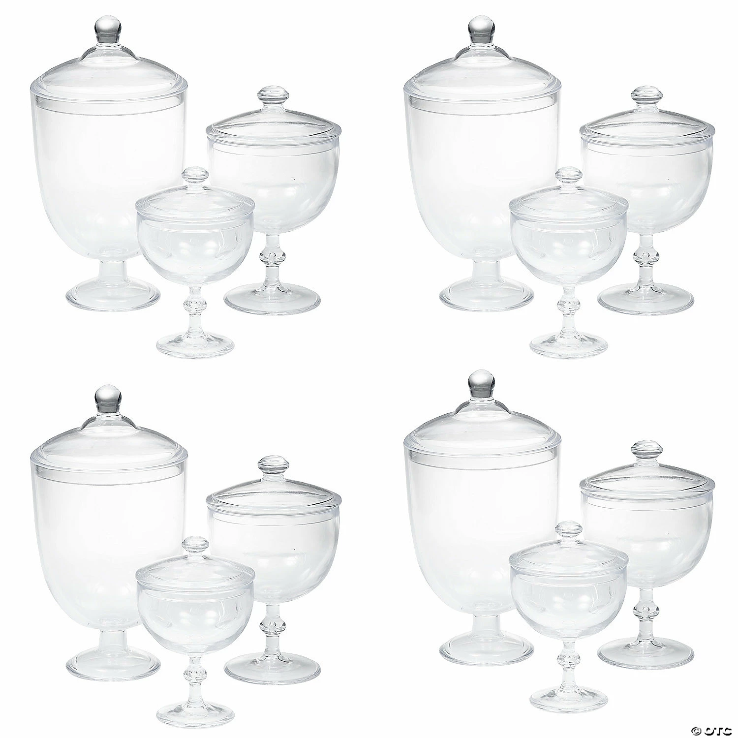 These plastic, sturdy apothecary jars come in a variety of sizes just right for filling with candy or other sweets and set out on your candy buffet! Or stuff them with flowers, beads or other decorative accents to add a touch of beautiful color to your wedding reception or other party space. After they’ve had their time as party supplies, send them home with guests as party favors or keep them for your own home décor use! Plastic. (12 pcs. per unit) 7″ – 11-3/4″ Scoops sold separately.