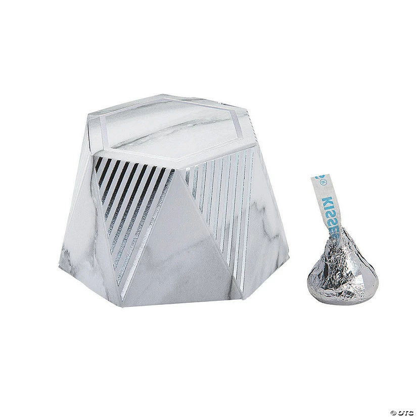 Deals π Geometric Silver Marble Favor Boxes – 24 Pc. π