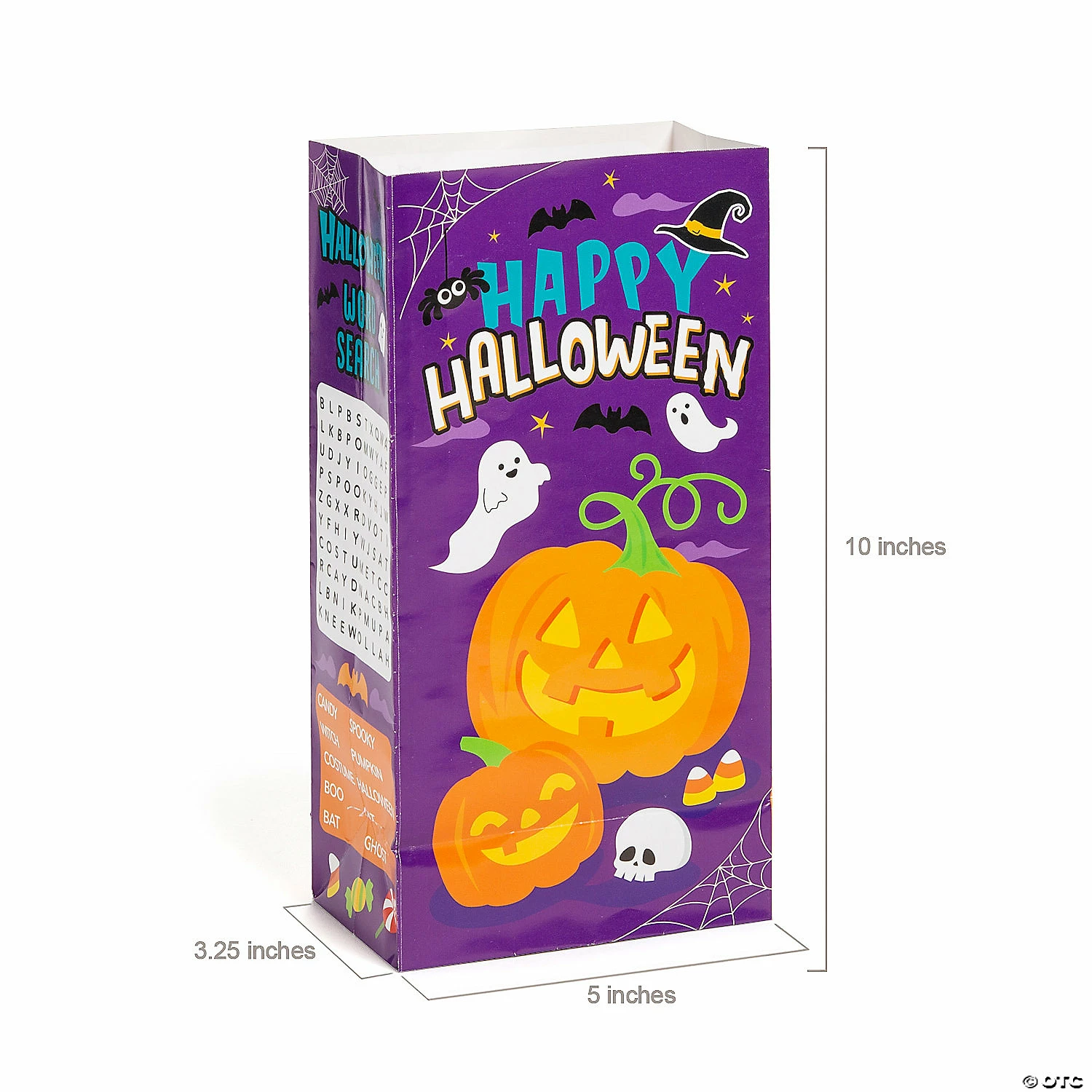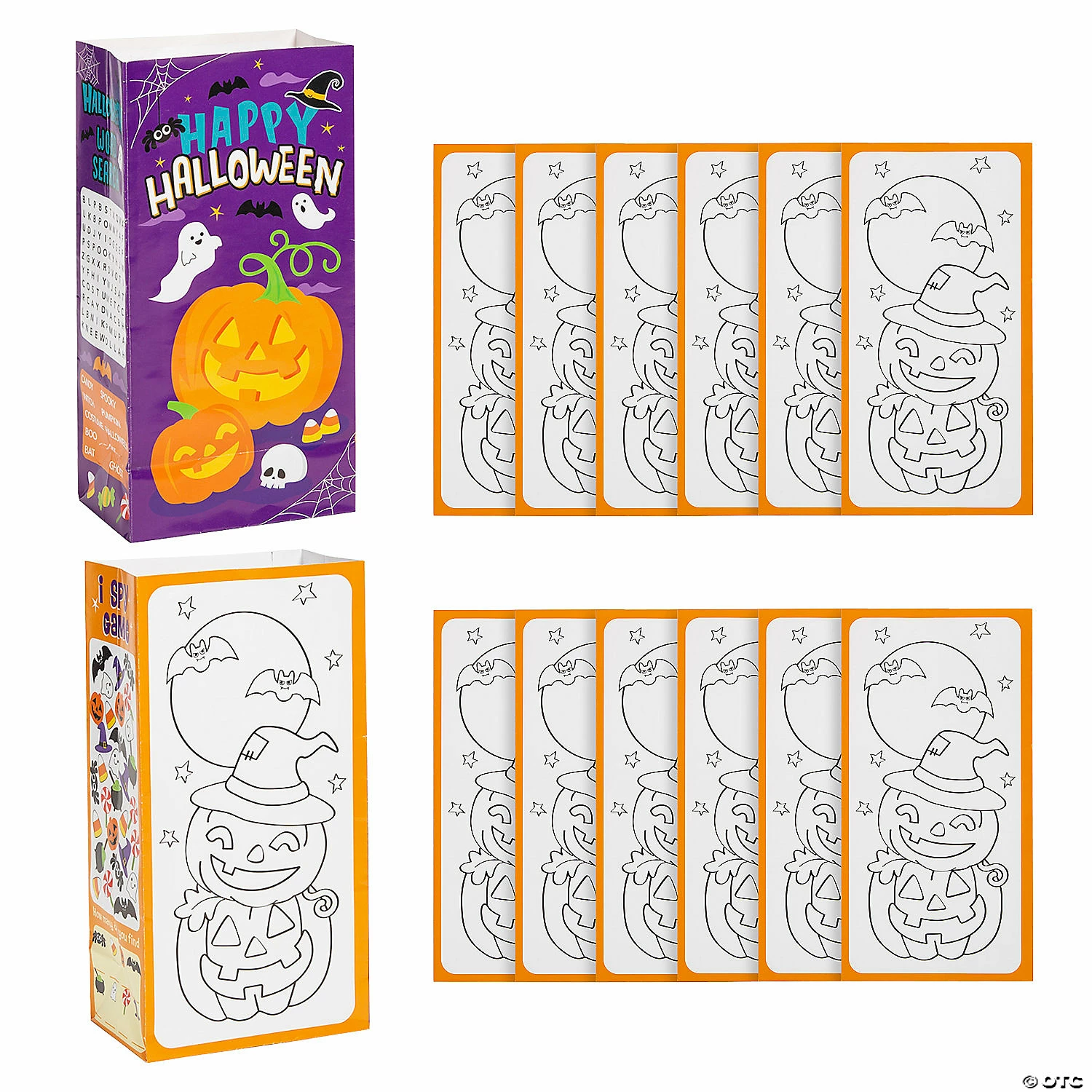 Why should whatβs inside the treat bag have all the fun? These paper bags are the kidsβ menu version of trick-or-treat bags with word finds, games and coloring activities to keep kids busy in or out of costume. Theyβre a spooky fun school Halloween party activityβonce the kids have completed their bags, they can use them to take home their Halloween haul. Paper. 5″ x 3 1/4″ x 10″ Β© OTC