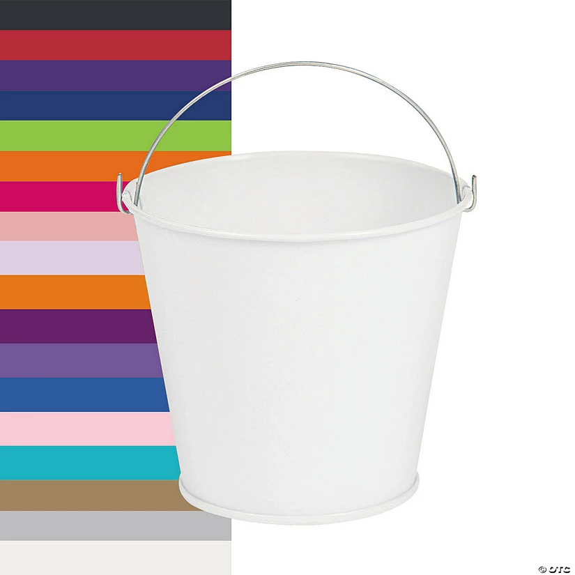 Decorate and fill these colorful tinplate pails with treats or favors to give your guests an unforgettable memento of your event! They’re perfect for placing on tables at your wedding reception. Fill them up with favors and treats that match your wedding colors! Metal. 3″ x 3 1/4″ diam. with 2″ handles. Not food safe, use wrapped candy only.