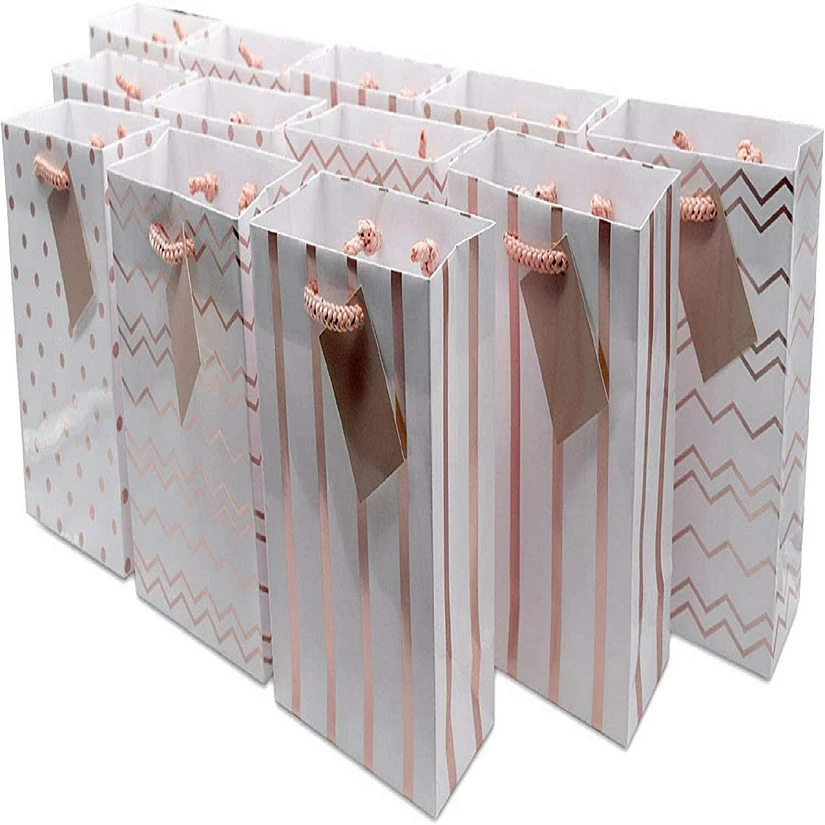 TRENDY DESIGNS: Made with 100% premium paper, these bags are decorated with Rose Gold foil stamped designs that give the bag a contemporary look. Use these bags for various occasions like holidays, birthdays, or as gift bags. The long and sturdy rope handles are strong enough to carry multiple items at once.