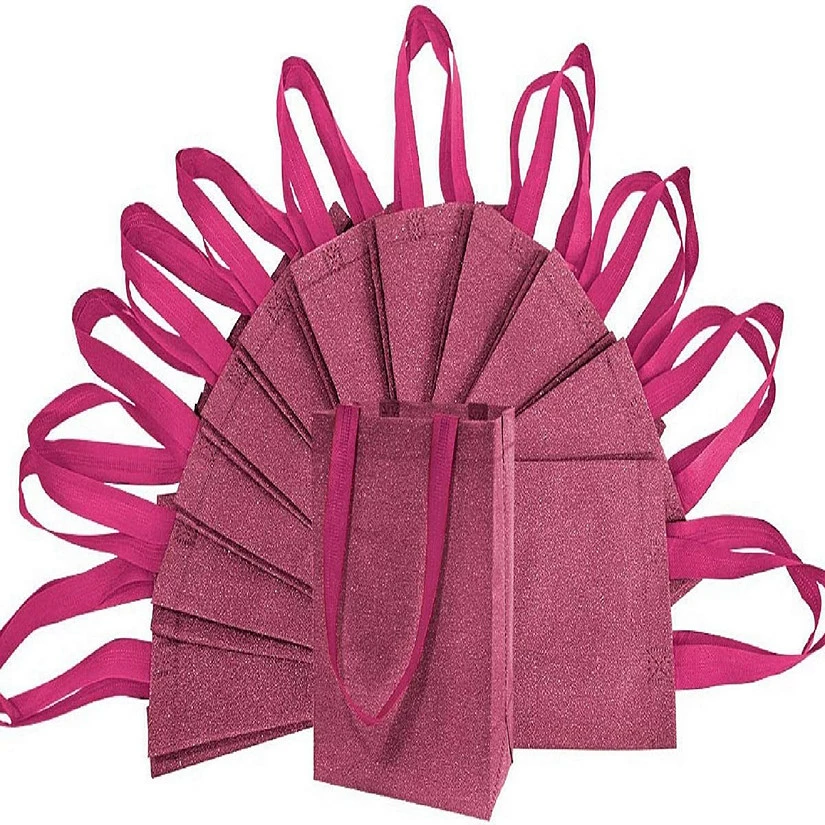 Small reusable red glitter gift bags with 1″ wide fabric handles. When opened they measure 6″ wide x 8″ high and 3″ deep. Comes with 12 individual bags. Great for gift giving, party favors, holidays, graduations, birthdays, wedding showers, or everyday use.
