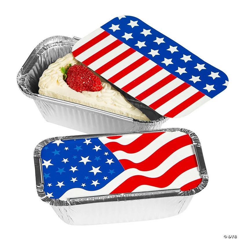 What a patriotic way to send meals home with loved ones! Whether youβre gathering to celebrate Memorial Day, July 4th or any other occasion, these containers are just right for stashing anything from the main meal to sides to desserts. They get dinner for round two, and you donβt get stuck with a cluttered fridgeβ¦win win! Cardstock and foil. 7″ x 4 1/4″ x 1 1/2″