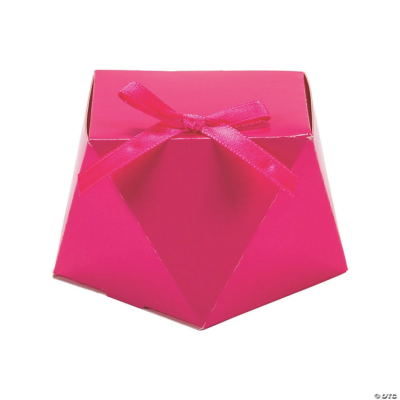 Budget π― Pink Geometric Favor Boxes with Bow – 12 Pc. π