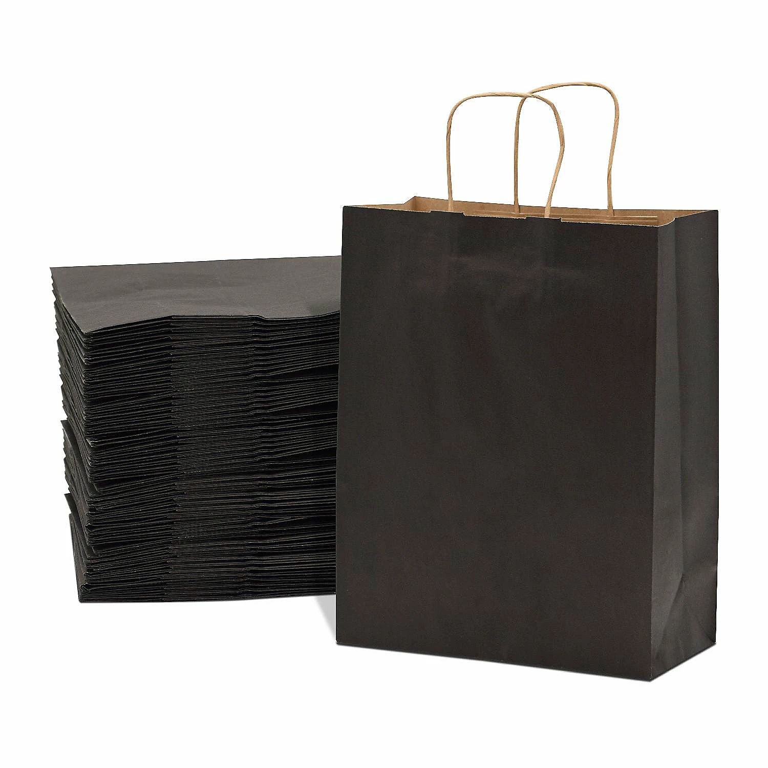 CONSTRUCTION: These bags are made from 100% recyclable black Kraft paper. Each bag measures 10″” wide, 5″” deep, and 13″” tall. There are 50 pieces per pack. All the bags are made of high-quality Kraft paper so they are sturdy and durable. These bags are the perfect option for creative gift-giving to your friends, for business uses, as restaurant bags, hold party favors, or use as shopping bags.