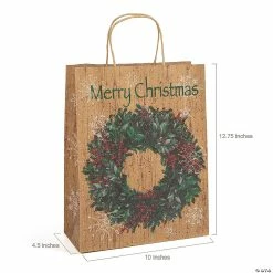 Cheapest 𧨠10″ x 4 1/2″ x 12 3/4″ Large Holiday Wreath Kraft Paper Gift Bags – 12 Pc. π