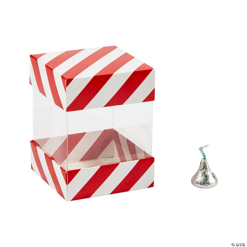 You donβt have to unwrap these boxes to find out whatβs inside! Featuring a clear design, theyβre great for small Christmas gifts, holiday party favors, colorful candy and homemade goodies. Think outside the box; they could be paired with other red and white party supplies for circus and carnival events, birthday parties and patriotic celebrations too! Plastic. 3″ x 3″ x 4″ Simple assembly required. Β© OTC