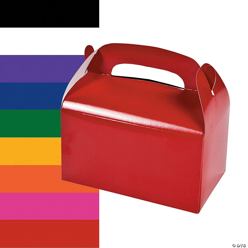 These Treat boxes are a must for gifts and goodies on the go! Tote your treats in style or add a little DIY flair and fill these versatile treat boxes with party favors. These Treat Boxes come with handles for easy carrying. Discover the perfect color treat box for your event or theme! Cardstock. 6 1/4″ x 3 1/2″ x 6″ Simple assembly required.