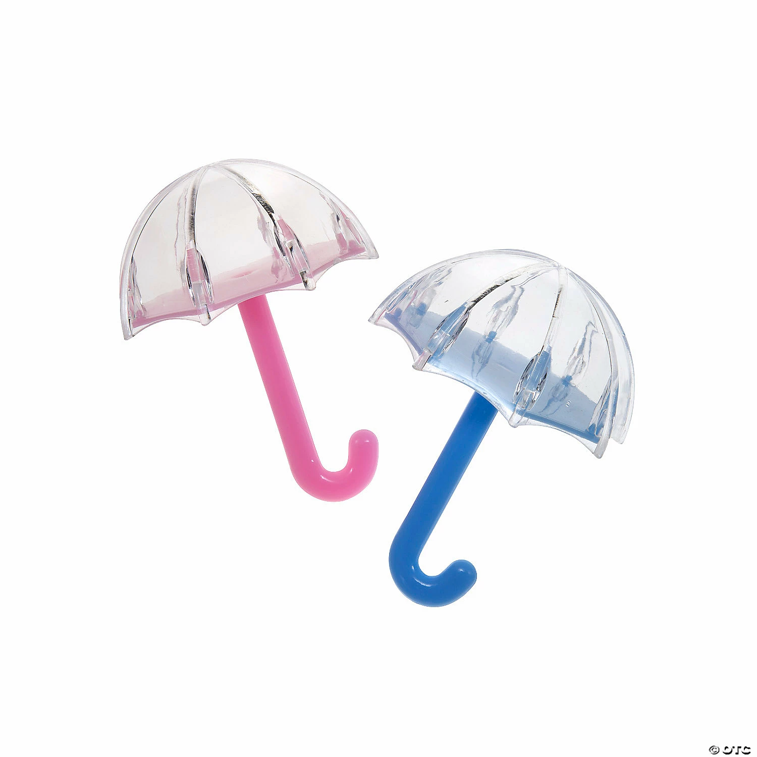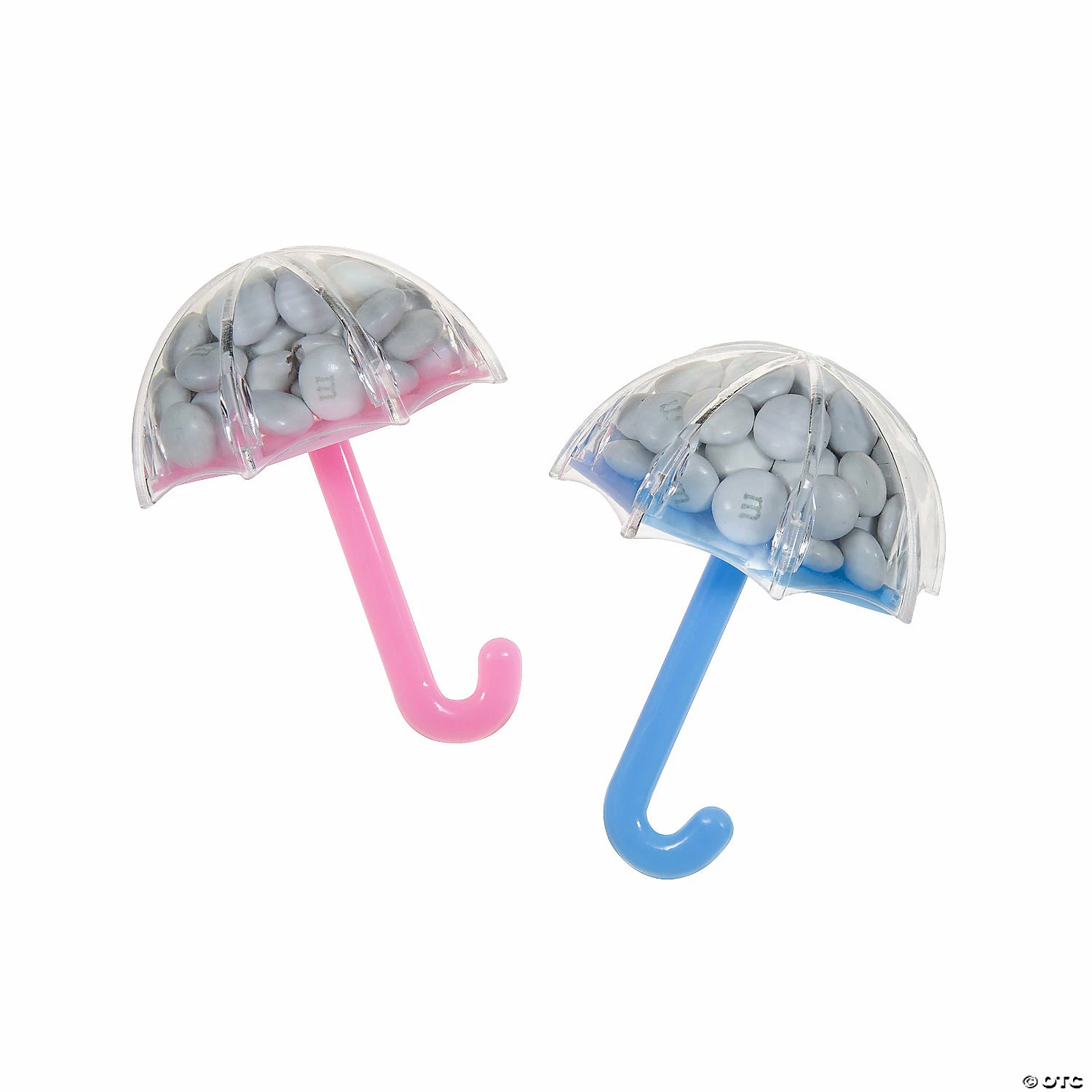 Itβs raining party favors! These unusual favor containers come in pink and blue β making them the perfect choice as baby shower or gender reveal party favor containers. Fill each umbrella with small candies of your choice (youβll find plenty of great options here on this website!) and hand them out to guests or use them to announce your pregnancy to those close to you. Plastic. 3″ x 3 3/4″