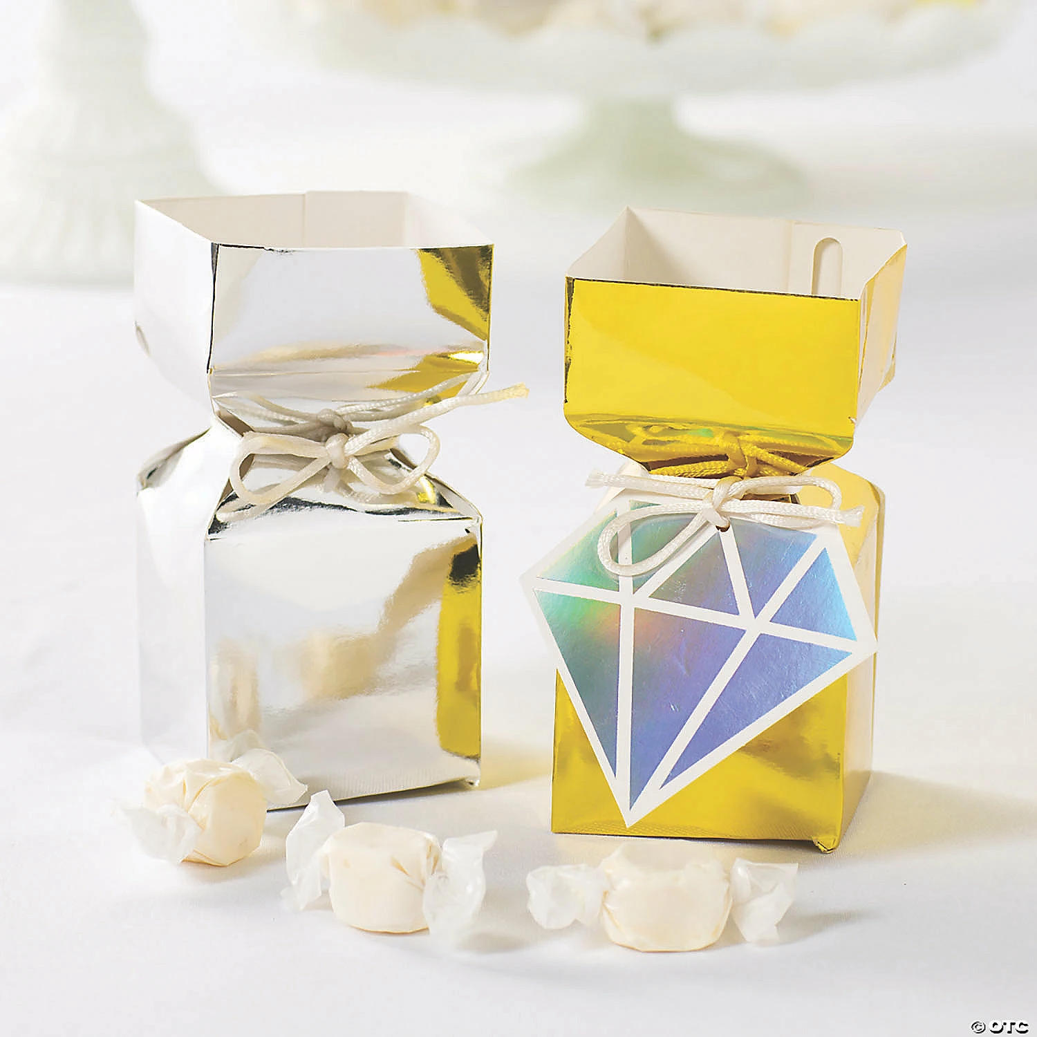These unique favor boxes are perfect for a wedding or golden anniversary party! Fill them up with candies or other small treats and set them out near the guest book or candy buffet. Add your own favor tags and accents or use as is! Includes satin cording. Paper. 2 1/2″ x 2 1/2″ x 5 1/4″ Simple assembly required. © OTC